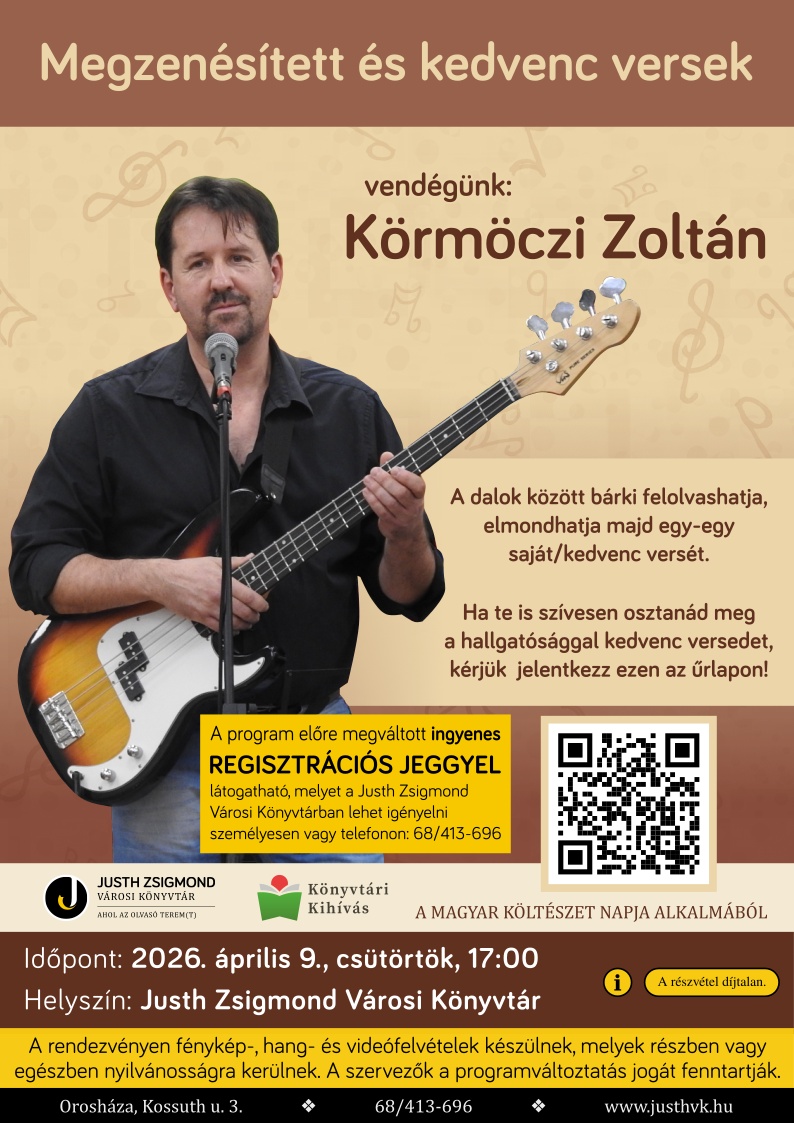 Megzenésített és kedvenc versek - vendégünk Körmöczi Zoltán - 2026. április 9.